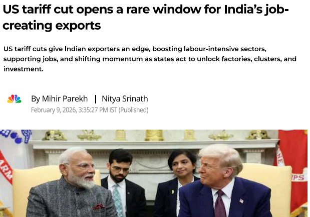 Uncertainty lifted on February 2nd, 2026, as the President Trump announced reduction of tariffs on Indian goods to 18% from more than 50% earlier. Mihir Parekh and Nitya Srinath explain that while the details are awaited, this is a breakthrough moment for Indian exports in general and labour intensive exports in particular.