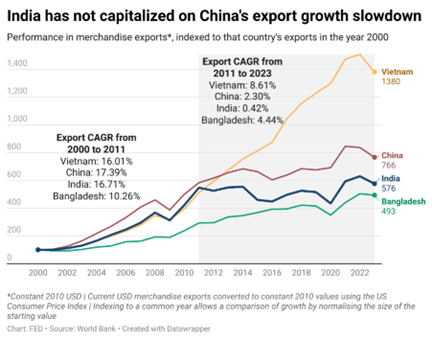 India has not capitalized on China’s export growth slowdown | March 2025
